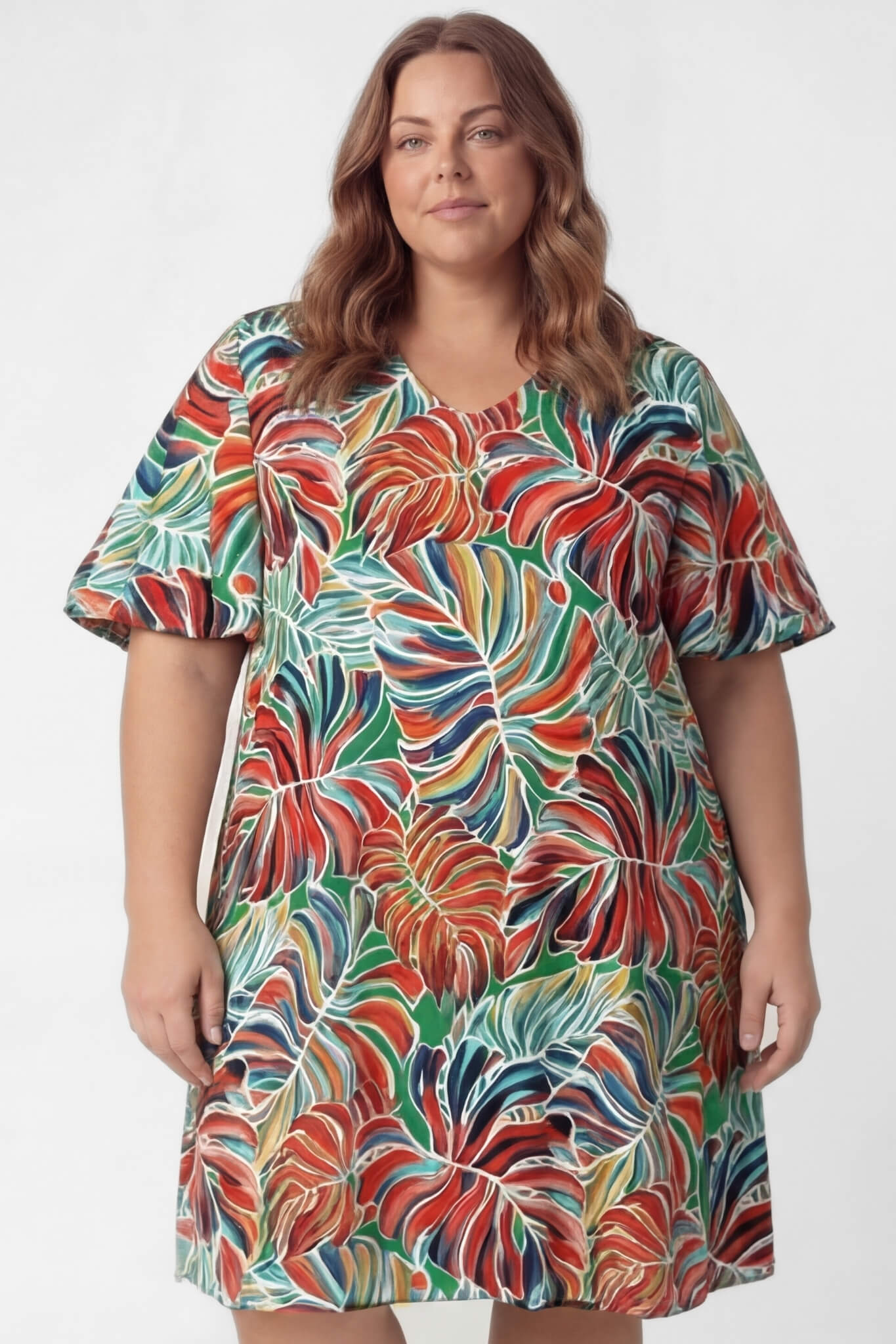 PRE-ORDER | Jurk Karin 110cm | Vlindermouw | Monstera Flow | Travelstof Venezia