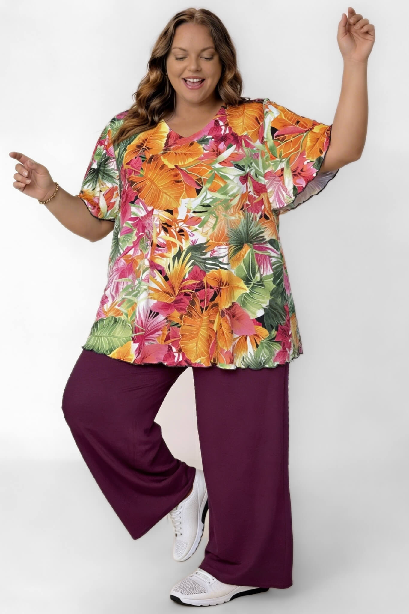 PRE-ORDER | Top Karin 90cm | Vlindermouw | Tropical Bloom | Travelstof Venezia
