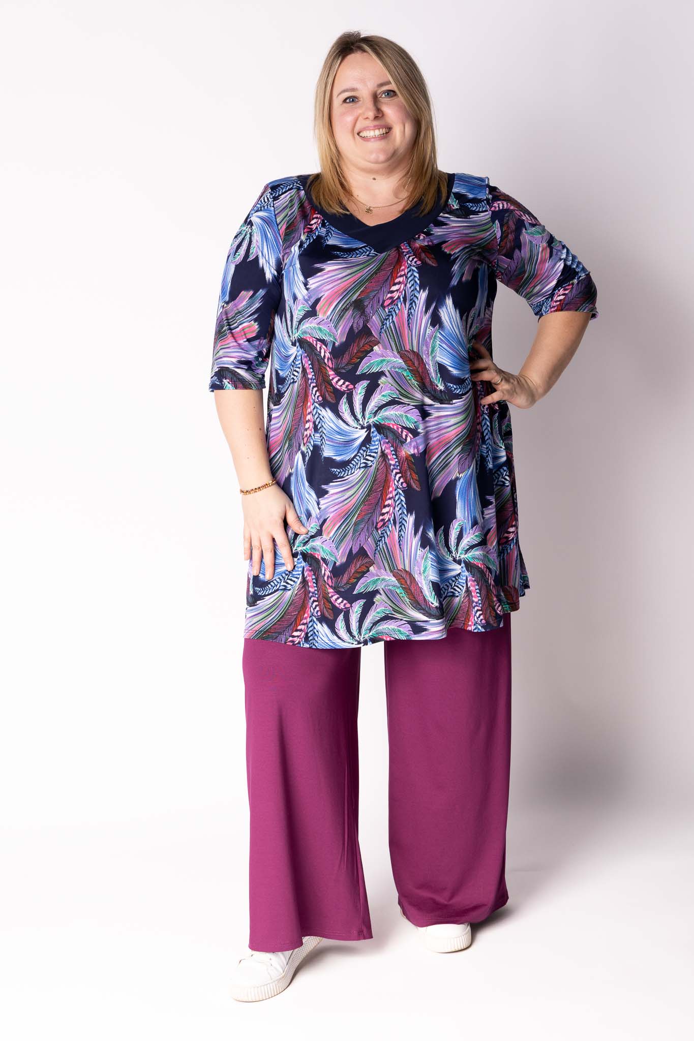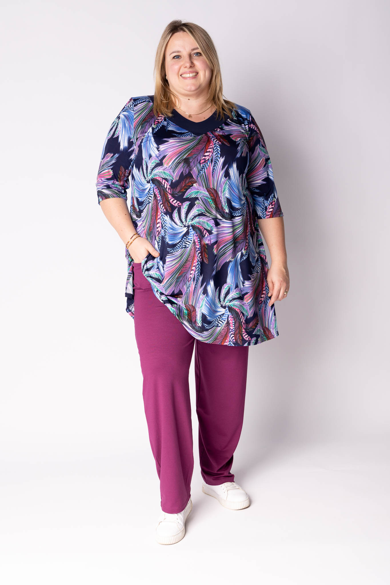 Tuniek Ans heeft een prachtige A-lijn pasvorm die soepel langs het lichaam valt en zorgt voor een flatterend, vrouwelijk silhouet. De licht uitlopende vorm geeft ruimte bij de heupen en buik, terwijl de bovenkant mooi aansluit – comfortabel én stijlvol tegelijk.
