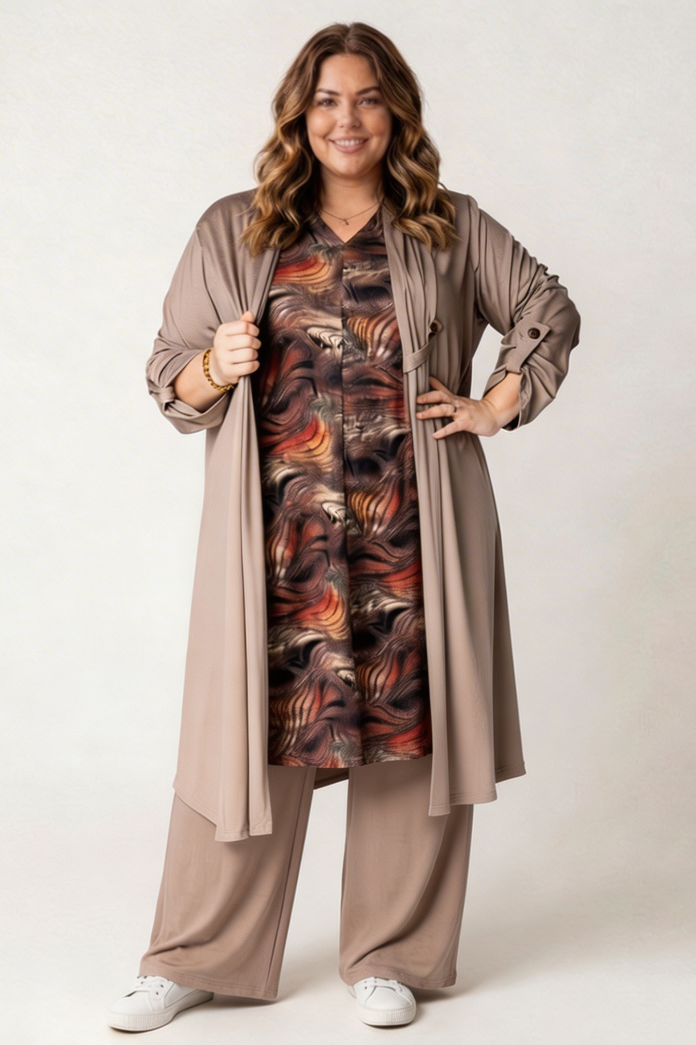 Het A-lijn model zorgt voor een mooie, vloeiende pasvorm die niet strak zit rond de buik of heupen. Perfect voor vrouwen met rondingen die zich graag zelfverzekerd en comfortabel willen voelen.